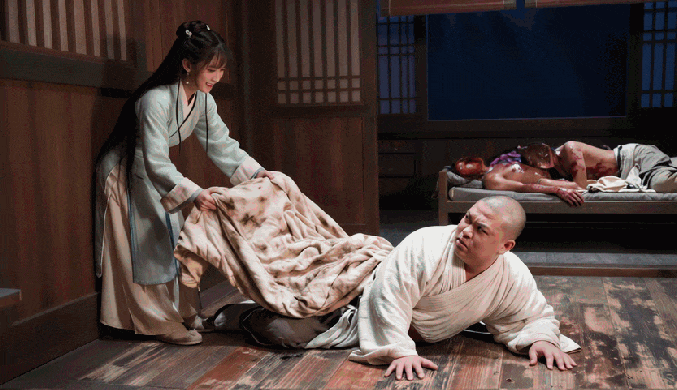 片刻之後等人走光了,裘芷仙把被褥揭開,露出一臉憋屈的笑和尚。
