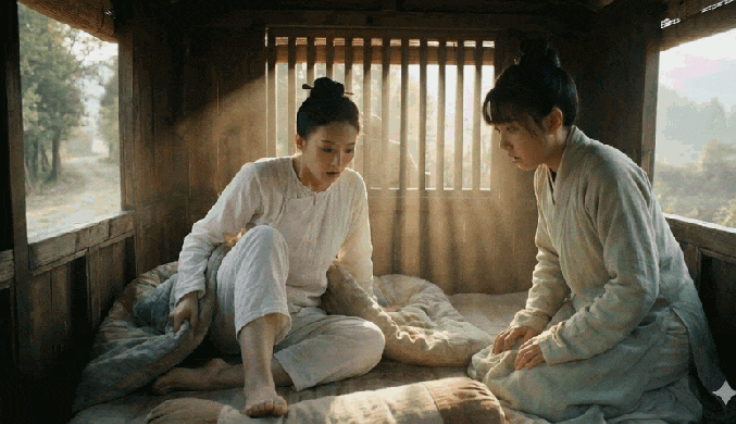 金蟬聽見動靜,焦急難耐,想要進車廂卻又被姐姐趕走,隻能攥著拳頭圍著馬車轉圈。