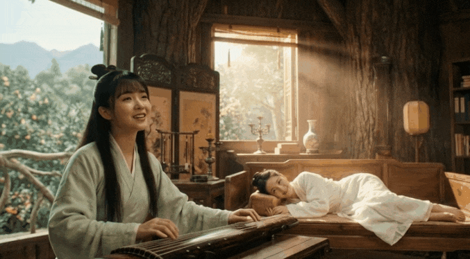 裘芷仙調絃叮咚,然後素手撫箏,絃音靈動似流水,時而清脆如鈴,時而婉轉如鶯。