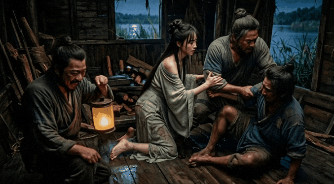 裘芷仙裝作無奈,歎氣道: “妾身……妾身其實是被髮賣出去的‘瘦馬’,因害怕受辱才從船上跳水的……”