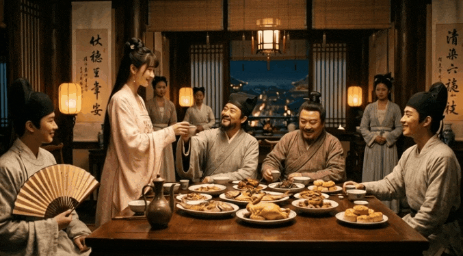 於是裘芷仙一番對答如流,然後微笑著給兩位學子斟酒: “……如公子所言, 有雲‘物有本末,事有終始,知所先後,則近道矣’,秋蘭以為這就譬如飲酒,先淺酌,後暢敘,先敬長,後交歡,此為先後之序,為本末之分~如此且讓秋蘭敬二位一杯~”